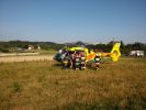 Przybyłe jednostki OSP Barycz, Wesoła Ryta Górka zabezpieczyły miejsce zdarzenia i udzieliły pierwszej pomocy osobie poszkodowanej. Strażacy sprawdzili funkcje życiowe u poszkodowanego motocyklisty i po zdjęciu kasku założono mu kołnierz ortopedyczny i ewakuowano go w bezpieczne miejsce na jezdni. Na miejsce został zadysponowany helikopter wraz z zespołem ratownictwa medycznego, który po przybyciu na miejsce przejął czynności ratownicze. Przybyłe zastępy z JRG Brzozów włączyły się do działań, pomagając zespołowi ZRM. Strażacy z JRG Brzozów odłączyli prąd w motocyklu, ograniczyli i zneutralizowali wyciek paliwa. Na miejsce przybył patrol Policji. Ratownicy następnie pomogli w transporcie osoby poszkodowanej do śmigłowca, który zabrał poszkodowanego do szpitala. Na miejsce przybył zespół dochodzeniowo śledczy. Po zakończeniu czynności dochodzeniowych przez Policję, usunięto pozostałości powypadkowe z jezdni. Działania trwały przeszło 3 godziny. Zniszczeniu uległ: prawy bok motocykla.