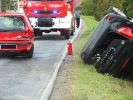Drugi z pojazdów znajdował się na drodze. Przybyłe zastępy z JRG Brzozów zabezpieczyły miejsce zdarzenia. Ratownicy w pierwszej kolejności udzielili pomocy medycznej osobie poszkodowanej z samochodu Ford poprzez założenie kołnierza ortopedycznego i udzielenie wsparcia psychicznego. Na miejsce przybyły dwa zespoły ratownictwa medycznego. Jeden z nich zabrał osobę poszkodowaną do szpitala. Następnie strażacy odłączyli dopływ prądu i gazu w obu pojazdach. Na miejsce przybył patrol Policji. Po wykonaniu czynności dochodzeniowych przez policję samochód Ford Fokus postawiono na koła przy pomocy wyciągarki samochodowej GBA 2,5/24 i przemieszczono oba pojazdy w bezpieczne miejsce. Miejsce zdarzenia uprzątnięto z pozostałości pokolizyjnych. Zniszczeniu uległy: tył pojazdu Fiat Seicento oraz bok i przód oraz dach pojazdu Ford Fokus. Działania trwały blisko 1,5 godziny.