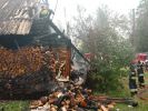 Strażacy z JRG Brzozów po przybyciu na miejsce zastali palącą się ścianę zewnętrzną budynku i część dachu budynku mieszkalnego niezamieszkałego. Zagrożony był sąsiedni drewniany budynek mieszkalny oddalony ok. 10m. Na miejscu pożaru nie było osób poszkodowanych. Przybyłe zastępy: JRG Brzozów, OSP Jasienica Rosielna i OSP Blizne zabezpieczyły miejsce zdarzenia i podały cztery prądy wody w natarciu na palący się obiekt oraz jeden w obronie na budynek znajdujący się obok. Odłączono dopływ prądu do budynku. Na miejsce przybyły kolejne zastępy OSP Orzechówka i Wola Jasienicka, które włączyły się do działań. Po zlokalizowaniu pożaru przystąpiono do usunięcia nadpalonego drewna opałowego, siana ze strychu oraz spalonej, stwarzającej zagrożenie części konstrukcji dachu. Na miejsce przybył patrol Policji. Po zakończeniu działań sprawdzono pogorzelisko kamerą termowizyjną. Spaleniu i zniszczeniu uległa: część konstrukcji dachu, jedna ściana zewnętrzna, drewno opałowe. Działania trwały blisko 2 godziny.