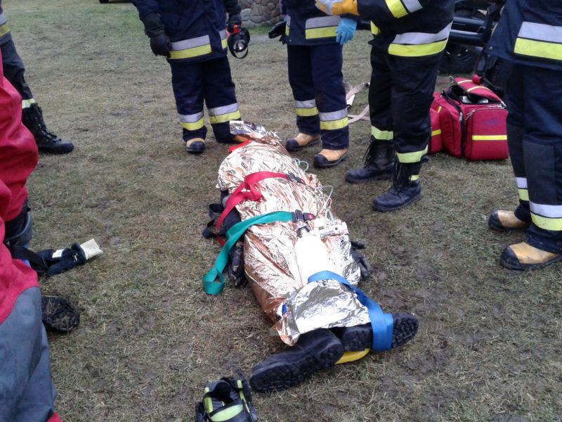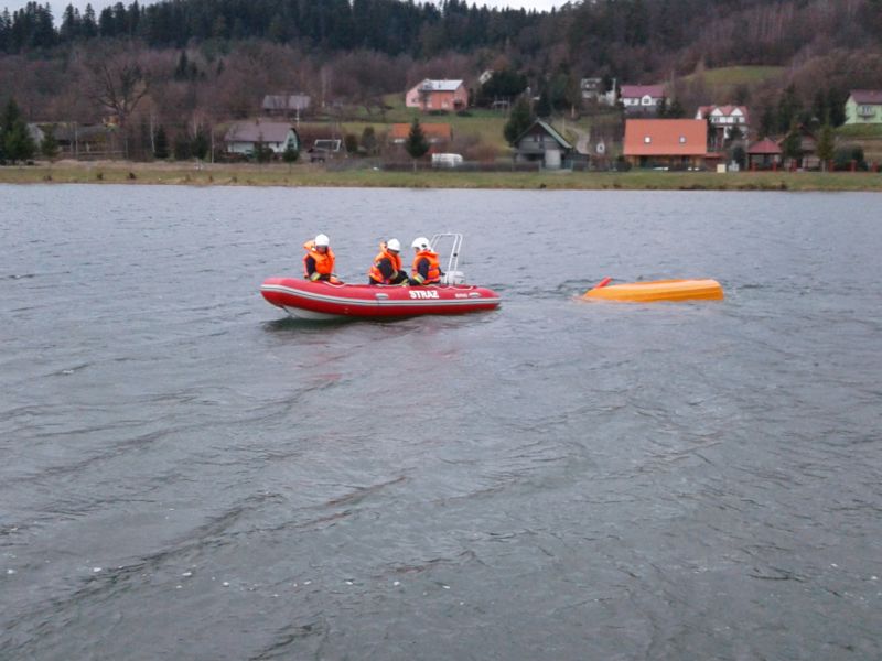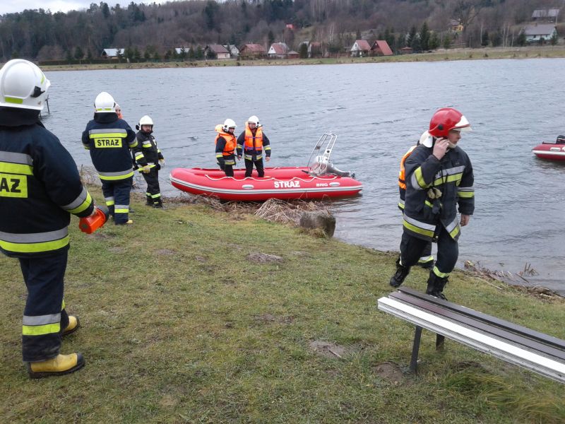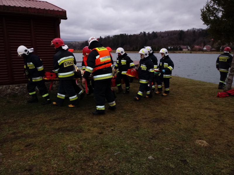W wyniku silnego podmuchu wiatru łódka została przewrócona a wędkarze wpadli do wody. Po otrzymaniu zgłoszenia dyżurny Stanowiska Kierowania Komendanta Powiatowego PSP w Brzozowie na miejsce prowadzonych ćwiczeń zadysponował następujące zastępy i sprzęt tj.: JRG Brzozów - GCBA 4/24, GBA 2,5/16 + przyczepę z pontonem oraz – OSP Blizne GLBM 0,2/8 Ford + przyczepę z łodzią hybrydową, OSP Nozdrzec GBA 2,5/16 Mercedes, OSP Dydnia GBA 2,5/16. Podczas prowadzonych ćwiczeń strażacy doskonalili umiejętności prowadzenia działań ratowniczych w czasie zimowym i porze nocnej. Realizując takie założenie każdy strażak ratownik winien umieć wykonać: